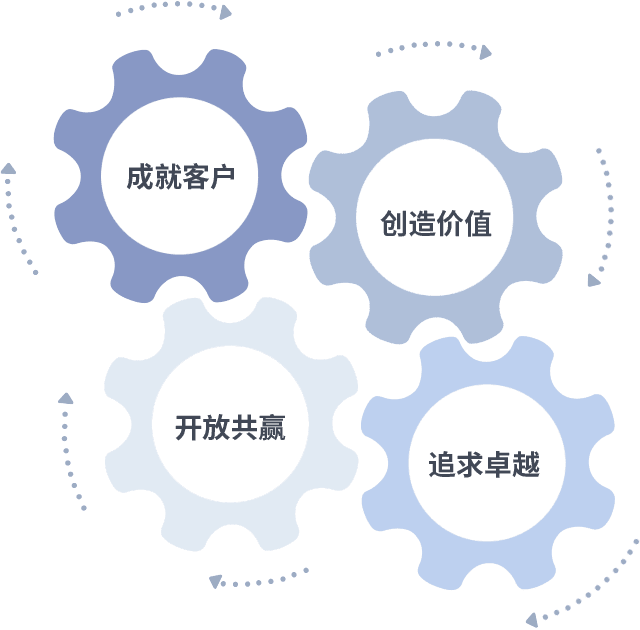 成就客户是一切决策的出发点,,,,创造价值是衡量所有工作的标准,,,追求卓越是尊龙凯时·做事做人的态度,,,,开放共赢是尊龙凯时·的格局也是最终的结果。。。。价值观的齿轮环环相扣,,推动着组织里的每个人不断向前。。